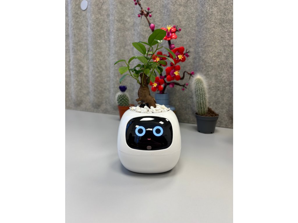 Díky chytrým senzorům a propojení s aplikací TUYA sleduje stav půdy, světla i teploty a ukazuje ti, jak se tvá rostlina cítí – přímo na svém expresivním displeji.